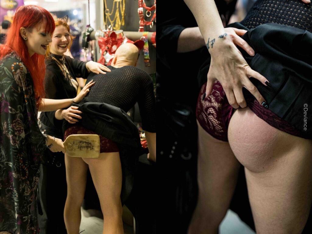 Auf der Passion-Messe, dem BDSM- und Fetisch-Szene-Treffpunkt, die immer Ende November für drei Tage in Hamburg Schnelsen stattfindet, passte man mit dem Rock nahtlos und perfekt in die Szenerie. Standardfrage war wie erwartet immer „Was trägst du denn drunter?“ Da kamen dann die Spitzen-Pants in edlem Dunkelrot ins Spiel. Und um es vorwegzunehmen: Ja, sie kamen sehr gut an.